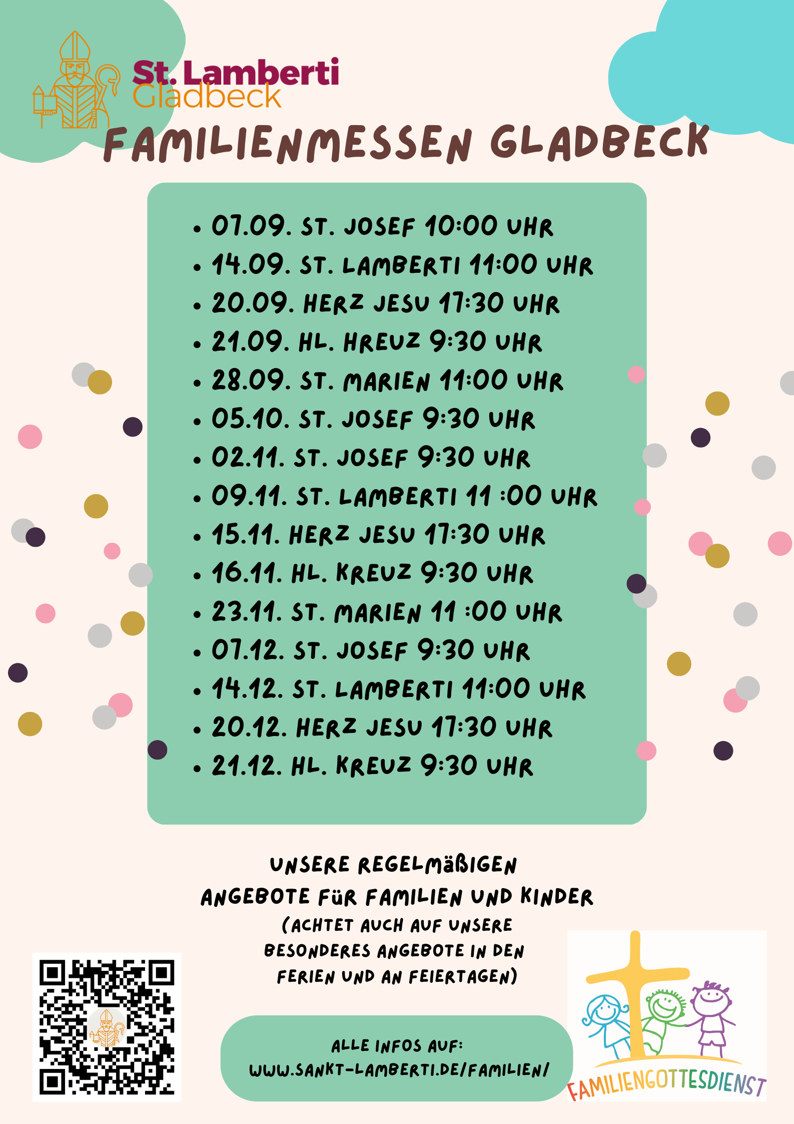 28. August 2025 /Aktuelles,Familien Regelmäßige Familiengottesdienste in der Pfarrei Herzliche Einladung auch in diesem Jahr zu unseren Familiengottesdiensten.